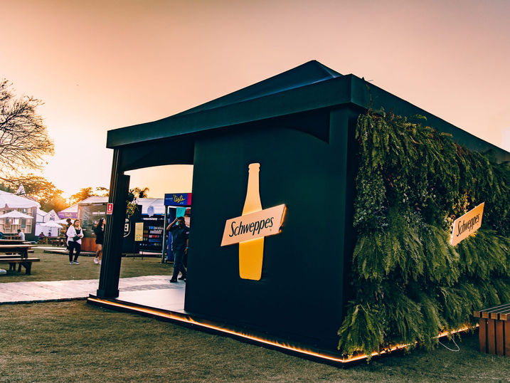 No estande da Schweppes, os visitantes curtiram o lounge retrô inspirado no conceito Speakeasy, com bancos tubulares industriais e mesas em preto e dourado absolutamente contemporâneos.